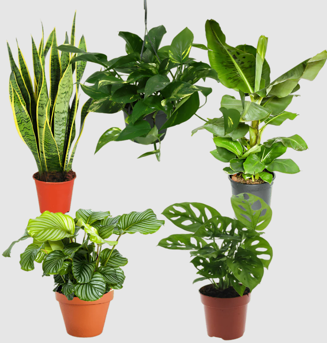 5er-Set „Exotica“ – Tropische Zimmerpflanzen zum Toppreis bei Flower Power Hol dir tropisches Flair direkt nach Hause! Unser 5er-Set „Exotica“ vereint Bananenpflanze, Korbmarante, Affenblatt, Efeutute & Bogenhanf zu einem stilvollen Ensemble voller lebendiger Grüntöne, abwechslungsreicher Blattmuster und natürlicher Eleganz. Dieses Set bringt Vitalität, Frische und exotische Leichtigkeit in jeden Raum – perfekt für Wohnzimmer, Wintergarten…