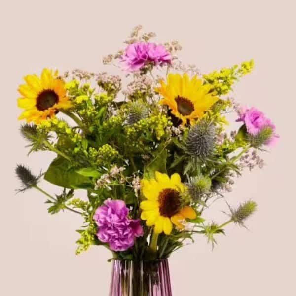 Ein echter Feel-Good-Strauß, der Licht, Wärme und gute Energie nach Hause bringt. Sonnenblumen, kombiniert mit leuchtenden Blüten und strahlender Stimmung: Sonnengruß bringt einfach gute Laune in jede Vase. Ob als Dankeschön, Geburtstagsgruß oder einfach so – dieser Strauß macht den Tag ein bisschen heller.