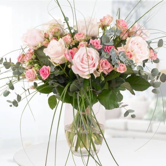 Zarte Strauchrosen bieten uns einen wunderschönen Anblick. Kombiniert mit hochwertigen Premiumrosen wirkt der Rosenstrauß Sophia elegant und edel. Unsere Floristen geben bei diesem Blumenstrauß alles und kombinieren zu den Rosen angesagten Eukalyptus und Bindegrün. Dieser romantische Strauß ist das ideale Geschenk für einen ganz besonderen Menschen und eignet sich besonders als Gruß zum Hochzeitstag oder Geburtstag.